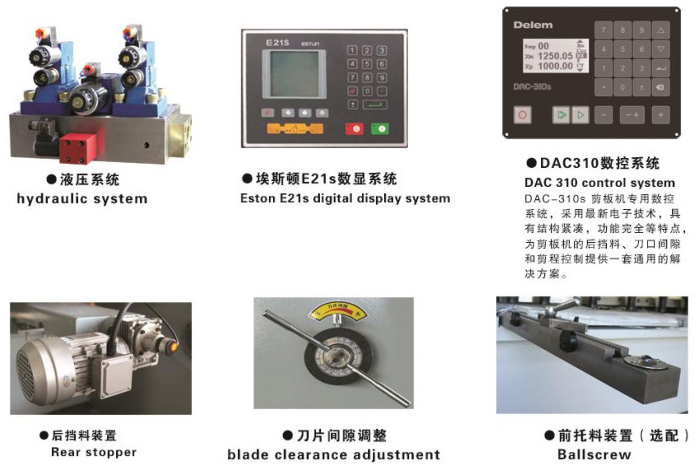 主机采用QC12Y系列液压摆式剪板机结构;数控系统选用 DELEM专用剪板机数控系统。后挡料电机选用进口交流伺服电机。后挡料丝杆选用进口滚珠丝杆+直线导轨;根据用户需要可选用其他型号数控系统。...