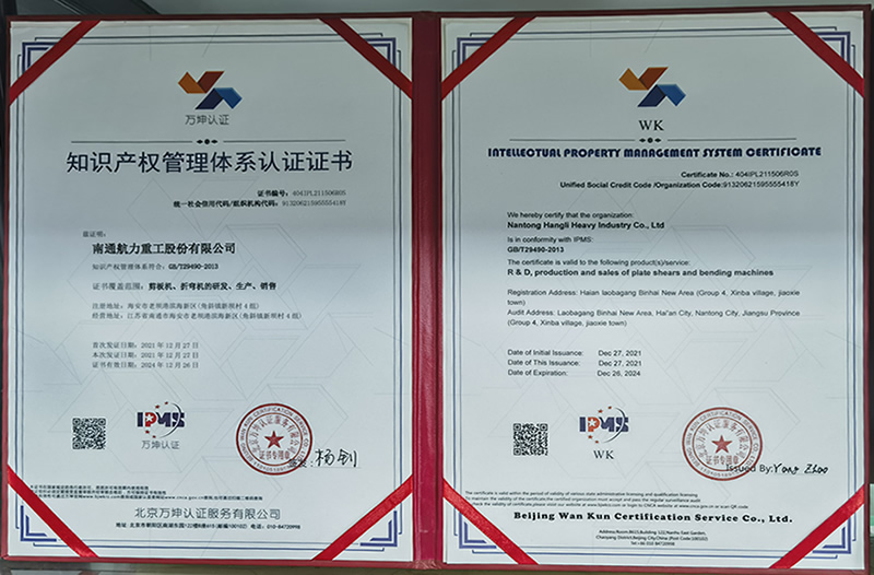 航力股份自成立以来,始终保持高度重视知识产权管理工作,专注于剪板机、折弯机、卷板机等钣金加工设备的设计、开发生产、销售、服务。